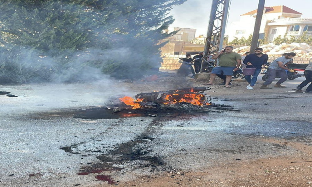 استهدفت مسيرة إسرائيلية، اليوم الأحد دراجة نارية في ميفدون في الجنوب.