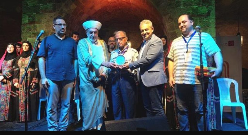 بعد ذلك أعلن بشاشة تكريم البلدية للقائد الكشفي في الجراح مروان حبلي بدرع بلدية صيدا الذي تسلمه من المفتي سوسان ورئيس البلدية حجازي.