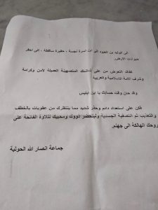 تعرض الإعلامي وليد عبود لتهديد بالقتل بعدما وجد ورقة على سيارته تحت منزله موقعة من جماعة أنصار الله “الحوثيين”.