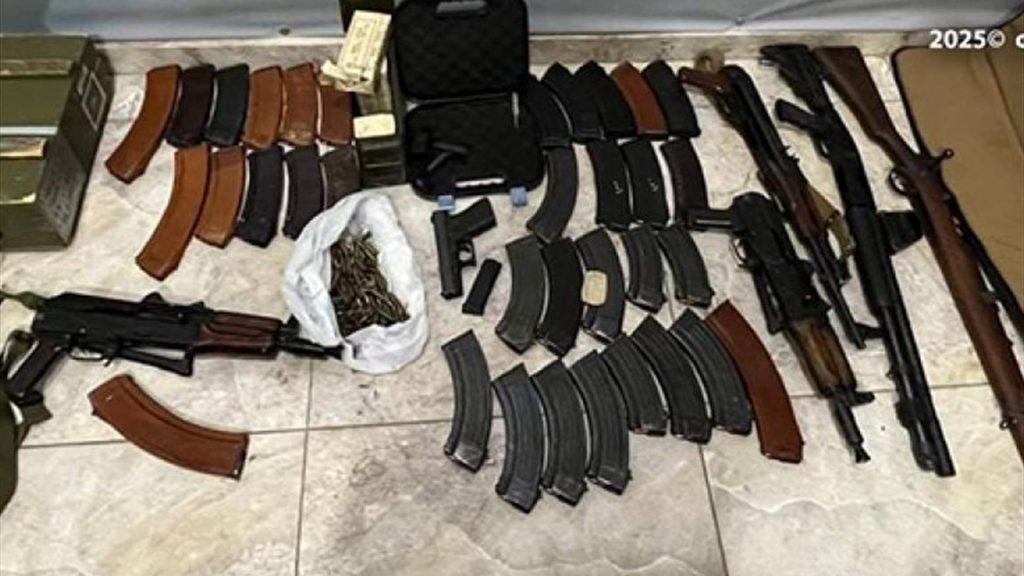 كما دهمت دورية أخرى من المديرية منازل مطلوبين في بلدتَي إيعات وعين بورضاي – بعلبك، وضبطت أسلحة وذخائر حربية ومعدات ومواد أولية تُستخدم في تصنيع المخدرات. وتجري المتابعة لتوقيف المطلوبين.