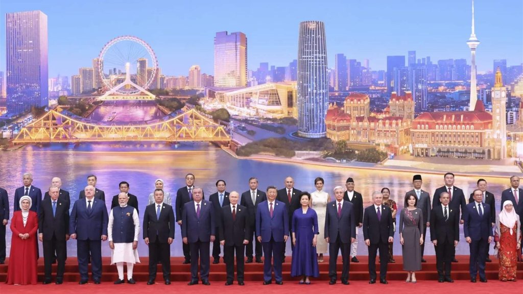 وشددت الدول الأعضاء في التكتل على “الطبيعة الملزمة” للقرار، مشيرة إلى أن “أي محاولات لإساءة تفسير هذا القرار أو تفسيره بشكل تعسفي ستقوّض سلطة مجلس الأمن”، وذلك بحسب البيان الختامي للقمة المنعقدة في تيانجين في شمال الصين.